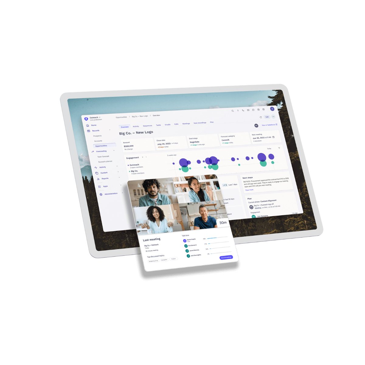 Outreach enhances the value of your CRM data by building connections from CRM to other critical applications and data that sellers use. CRM becomes critical input into the sales cycle rather than a stagnant database, and Outreach becomes the system of action for your sellers.
