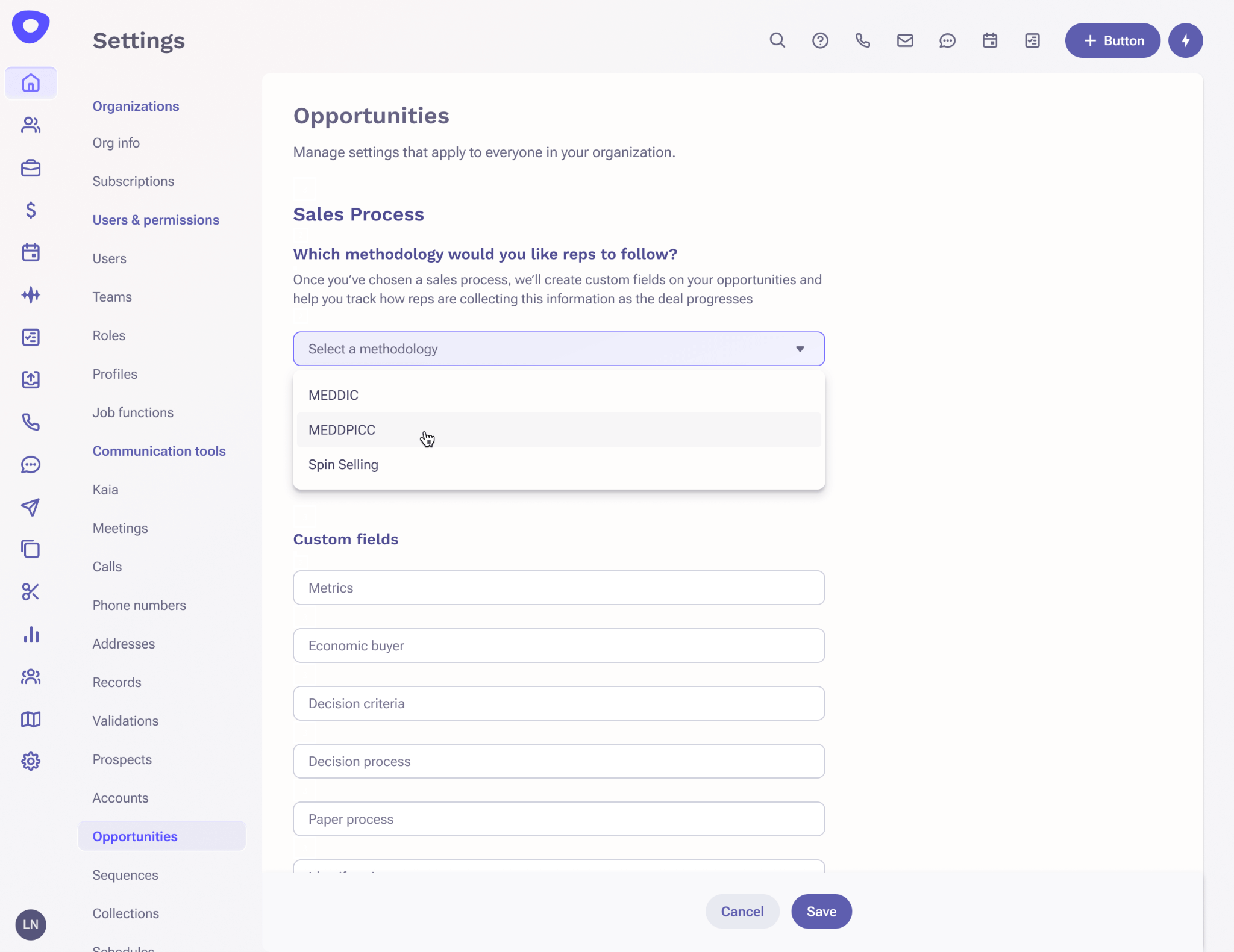 Outreach helps sales leaders operationalize their sales methodologies, like MEDDPICC, MEDDIC or SPIN Selling. Reinforcing your sales strategy directly in Outreach where your reps execute their sales activities makes it easier to entrench best practices to improve and scale performance. This also helps drive quicker ROI on the investments youve made implementing and training your reps and managers on your sales strategy.
