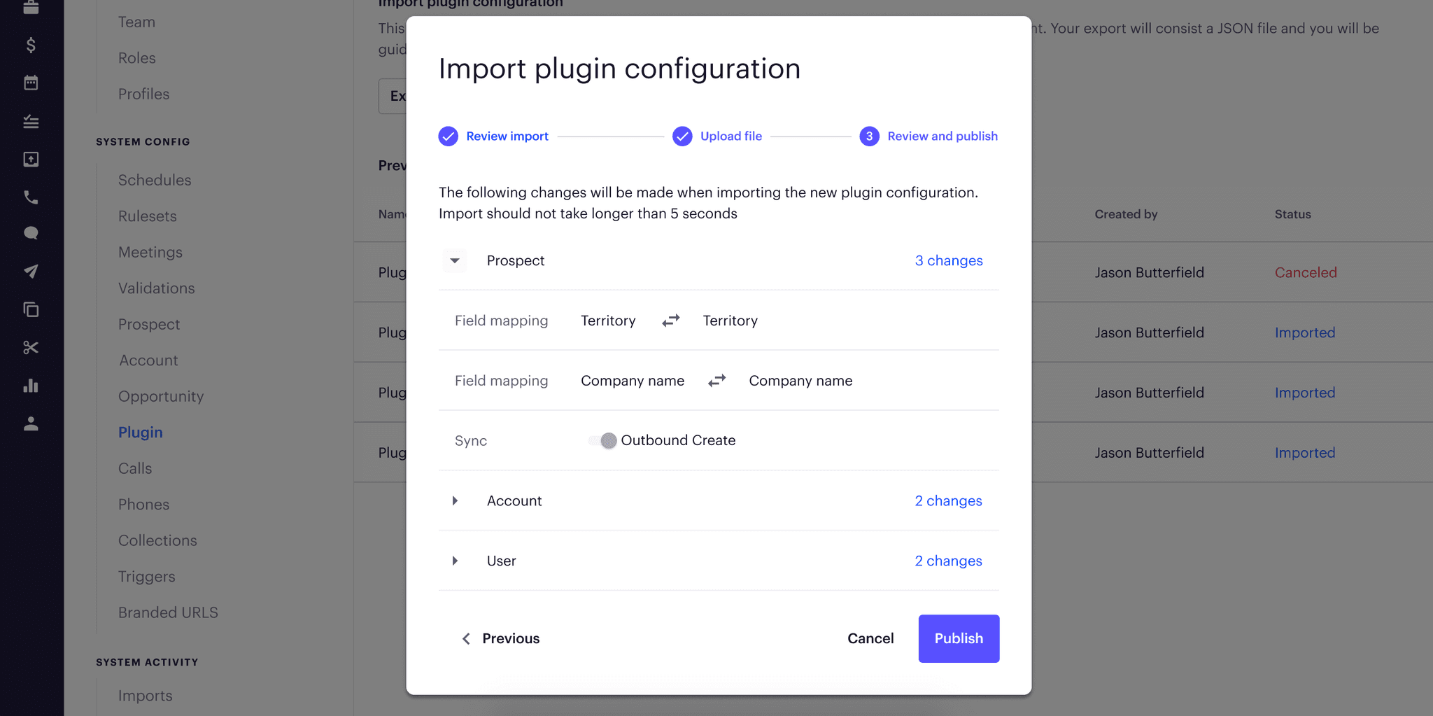 With Plugin Configuration Manager, Outreach admins can export, migrate, and restore a snapshot of their CRM<>Outreach plugin configuration. Admins can easily test then promote sandbox changes to production in minutes, saving admins up to twenty hours each time plugin changes are necessary. Testing, copying, and moving configurations between environments is now as easy as exporting, then importing a file!