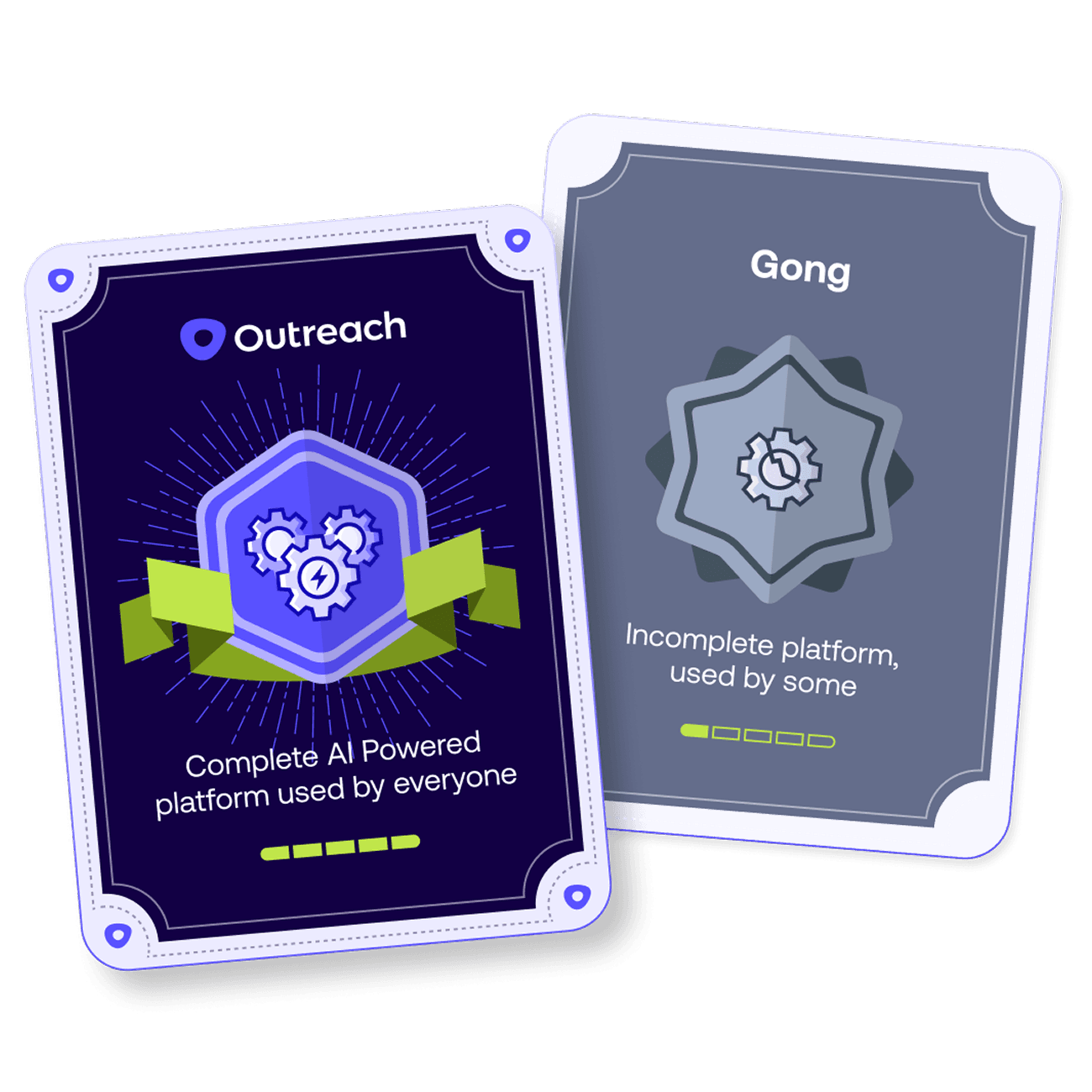 Gong focuses on analyzing calls and providing coaching insights. Outreach goes much further – uniting prospecting, customer engagement, and revenue intelligence in one AI Revenue Workflow Platform. It helps teams act on insights, execute across the full revenue cycle and deliver predictable growth.