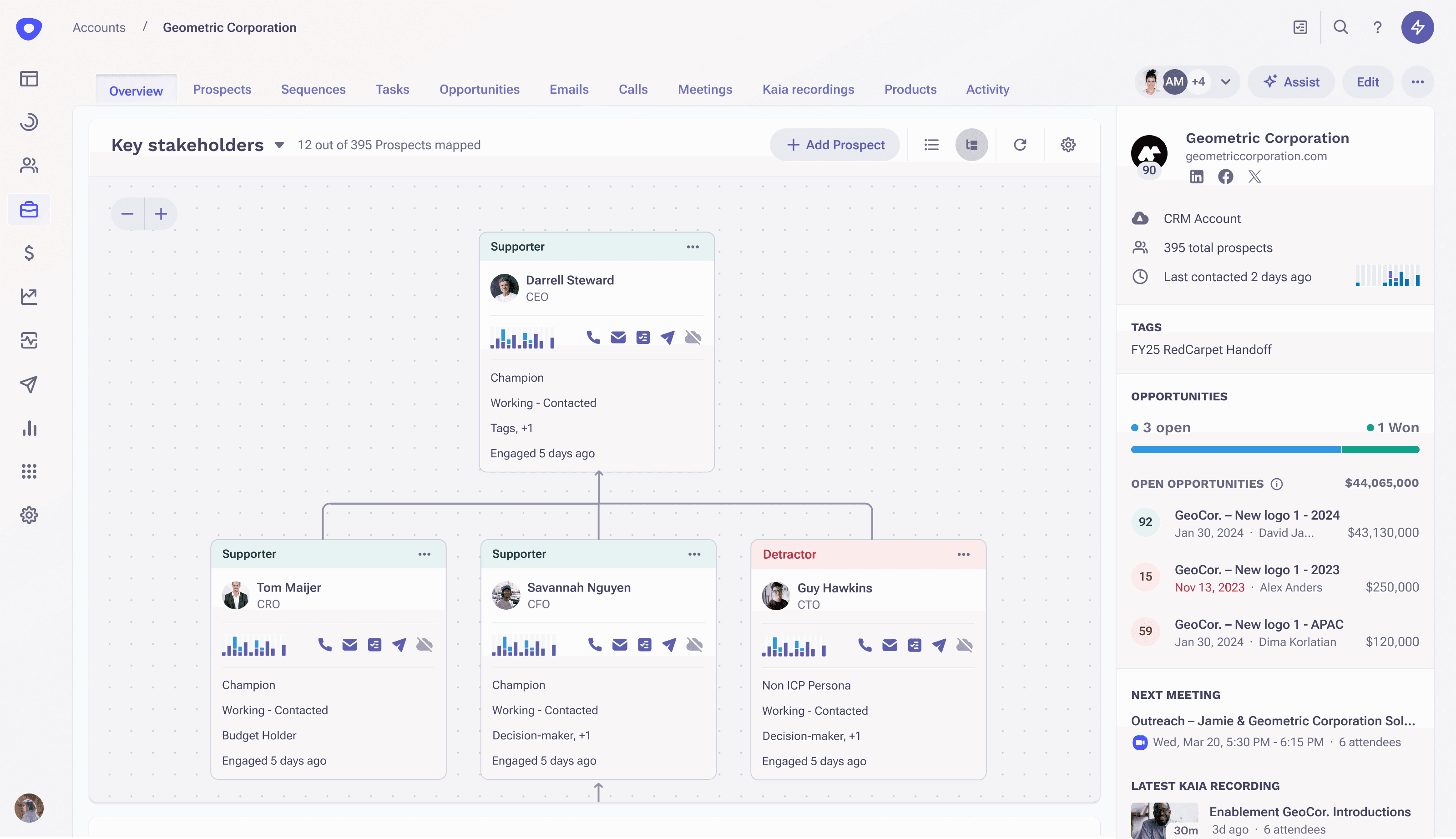 Create and edit a visual representation of stakeholders in the buyer’s org, their reporting lines and easily illustrate how prospects influence each other in the buying process.
