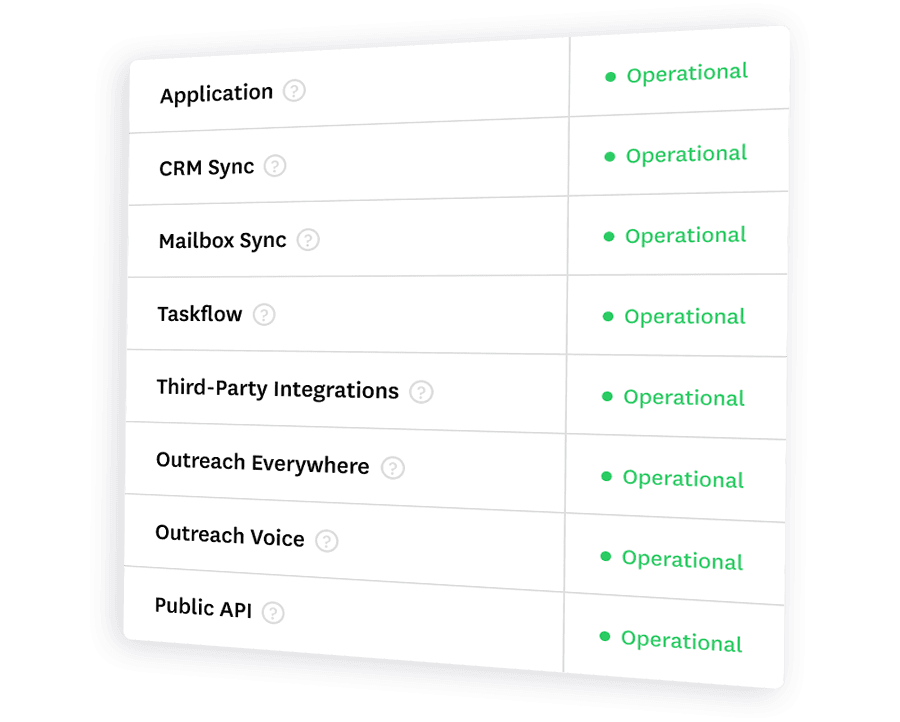 Outreach’s production infrastructure is hosted on Amazon Web Services as our primary Infrastructure as a Service (IaaS) provider. In addition to AWS’s extensive list of security and privacy certifications, Outreach also implements and attests to its own set of policies and practices to secure your data.
