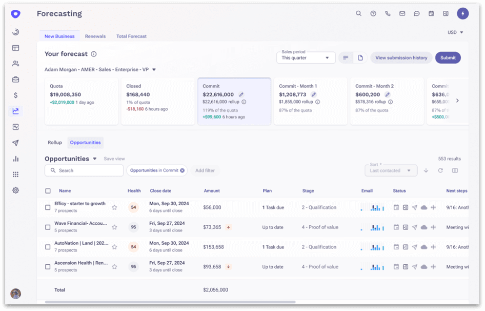 • AEs start the day focused with meetings and target opportunities or a personalized hub for SDRS that guides what tasks to tackle first