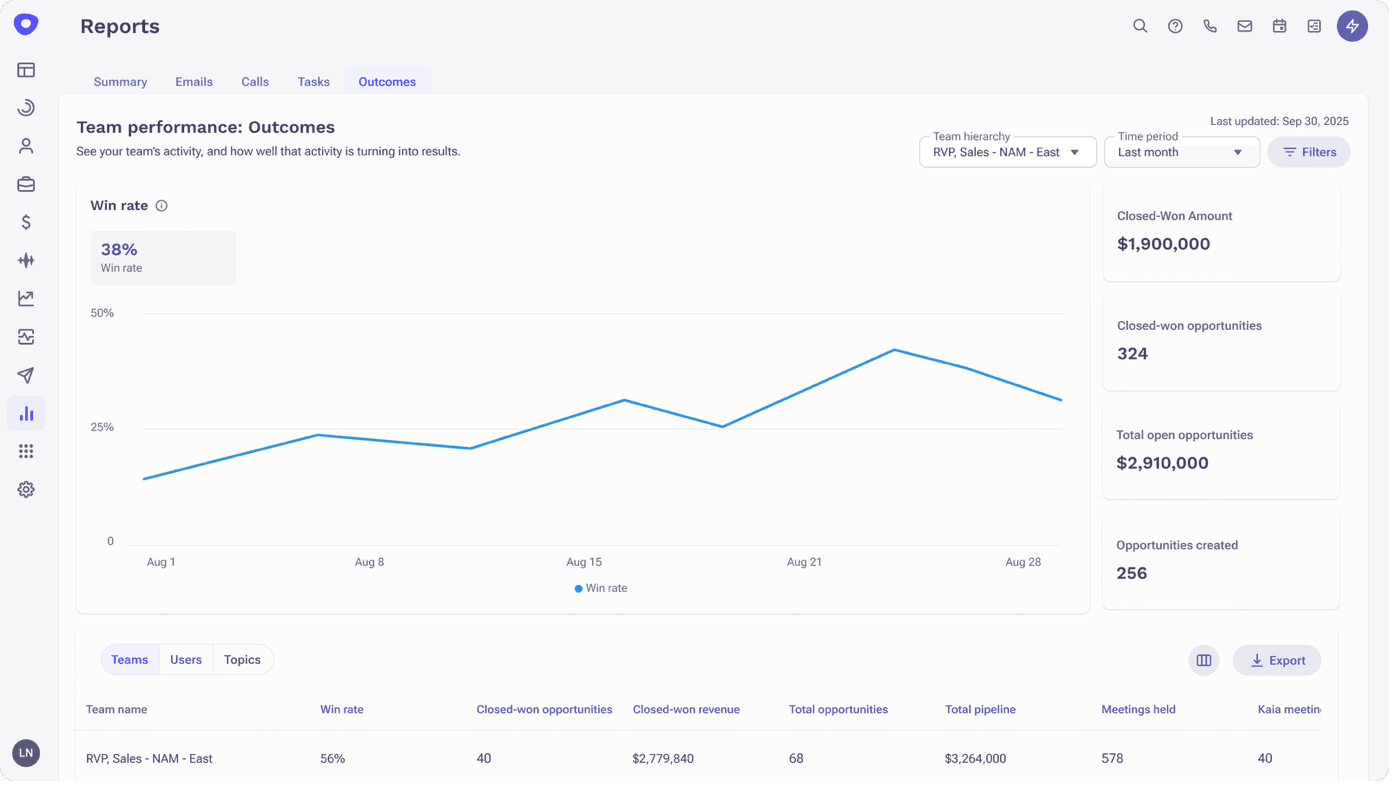 - Compare outcomes across sellers, teams, and conversation topics to replicate top performance