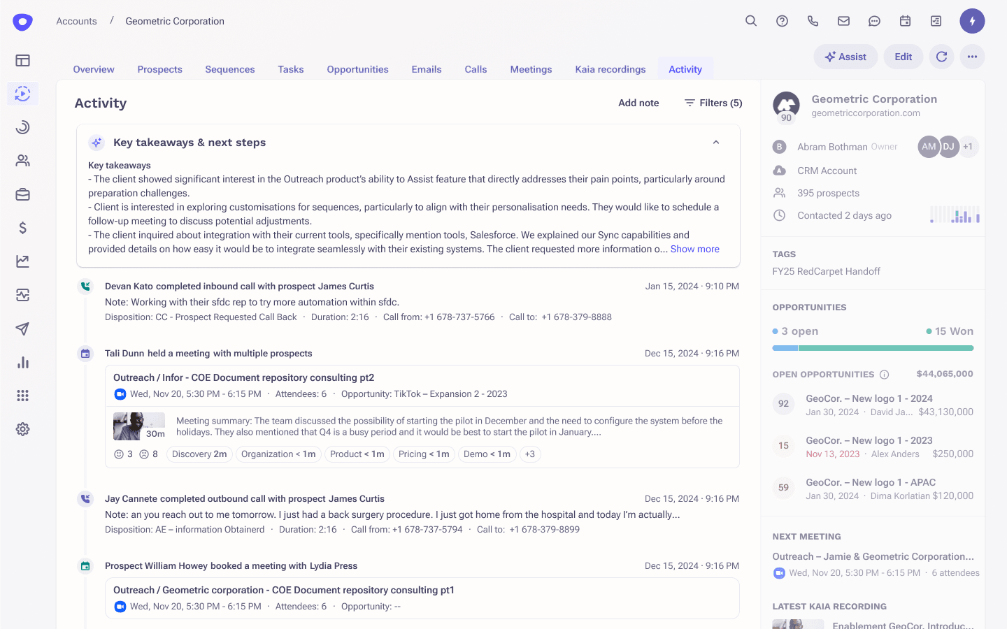 • Access Account Assist directly in your CRM, Outreach extensions, and the prospect side panel, so insights show up wherever your team works