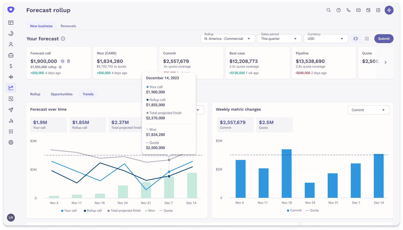 • Compare week-over-week changes in forecast metrics to gauge pipeline health