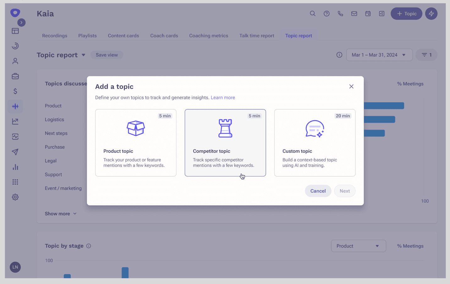 • Compare outcomes across sellers, teams, and conversation topics to replicate top performance
