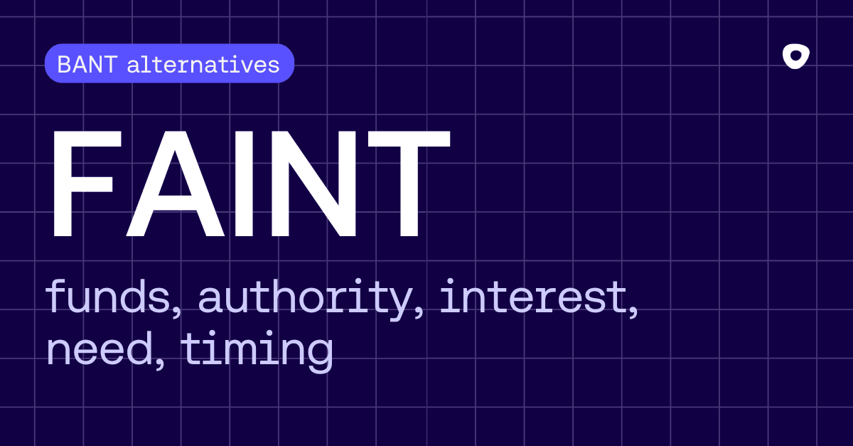 FAINT replaces 'budget' with 'funds' and adds 'interest' as a key qualifier. It’s particularly useful for markets where traditional budget allocations might not be clearly defined — think new technology, industry disruptors, or category-creating brands. For sellers at these types of organizations, part of the sales process involves creating need and generating interest, rather than replacing an existing solution. FAINT allows for more flexibility in financial discussions and puts more emphasis on the prospect's engagement level.