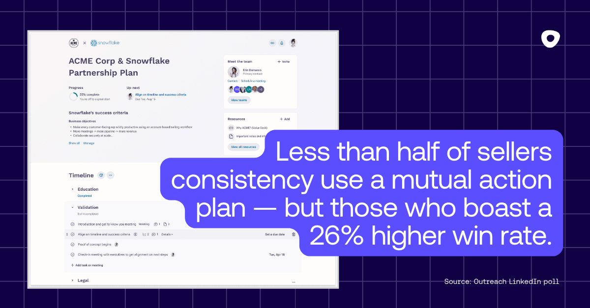 With some careful planning, any sales team can (and should!) bake mutual action plans into their process. We break down the obstacles teams face when implementing plans, plus five best practices to avoid them in our article about how to use mutual action plans.