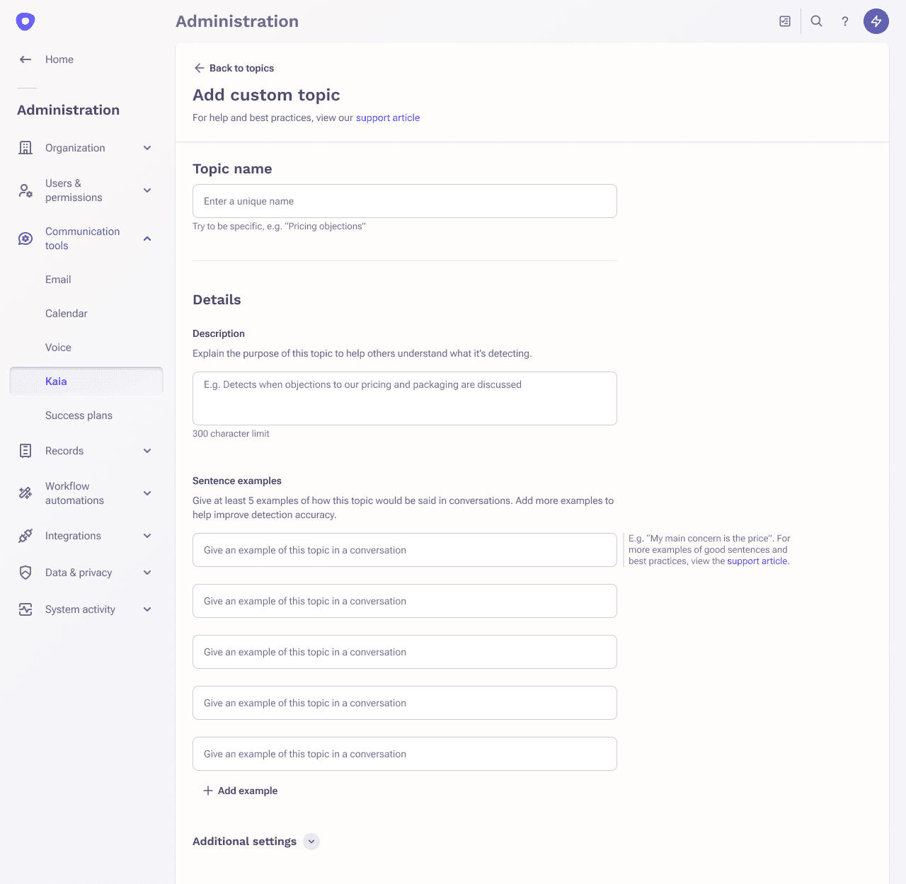 Energize your teams. Learn more about how your organization can use Kaia Coach Cards and the Coach Card Report to celebrate and replicate success, and read more how to set up the Custom Topics your business needs.