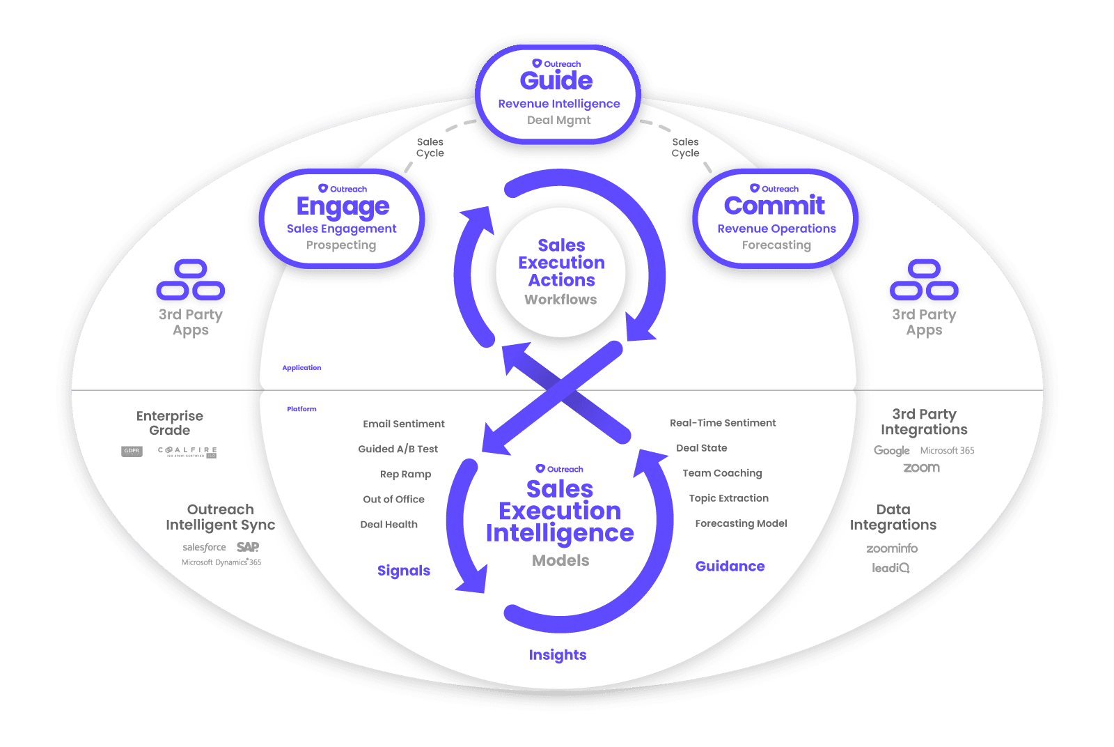 The Outreach Sales Execution Platform, with embedded automation and artificial intelligence (AI), helps every member of the revenue team — from the top sales leader to post-sales personnel and everyone in between —dramatically increase their efficiency and effectiveness. The platform works in concert with an organization’s CRM to develop a more thorough and accurate customer data set to drive actionable insights.