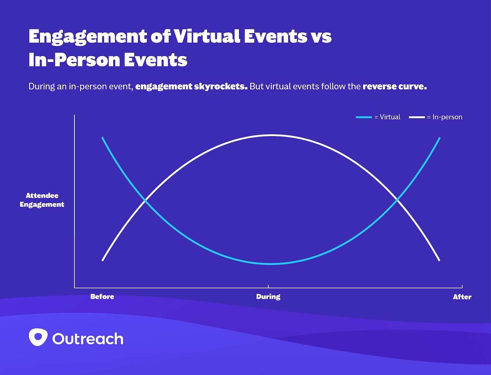 During an in-person event, engagement skyrockets. But virtual events follow the reverse curve.