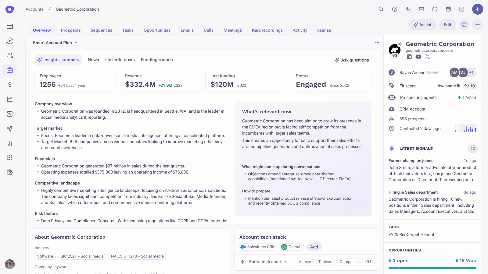 AI also performs deep research on a target account from the company's website, 10-K statements, press releases, news and posts.