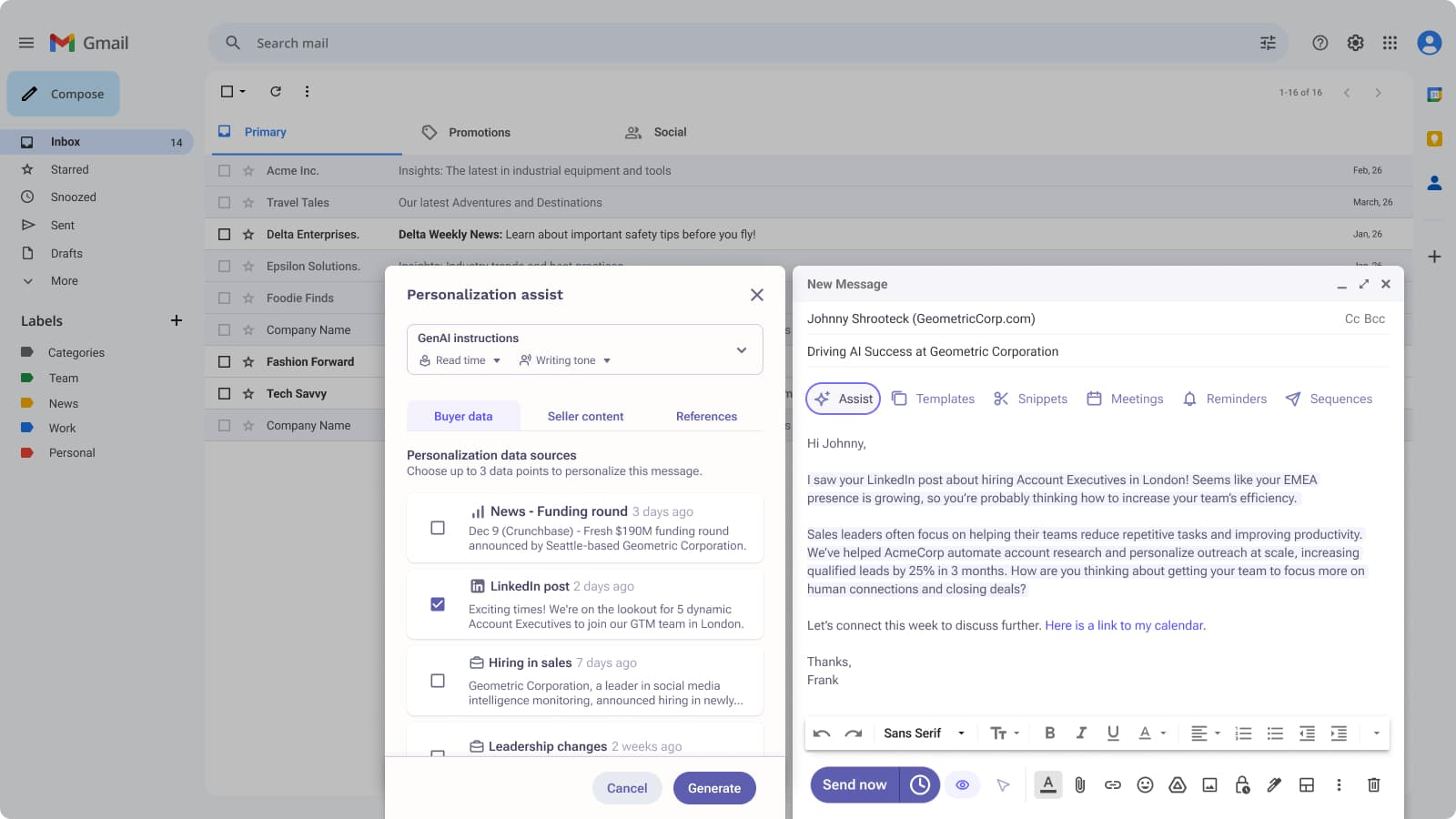 And the magic continues when you connect this research and content to automate the entire prospecting workflow.