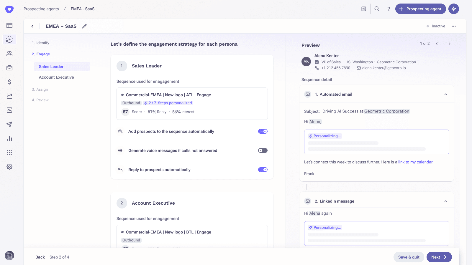 If you target strategic accounts or existing customers, you want human oversight. AI has still done all the heavy lifting, so the seller simply needs to review it before engaging the customer.
