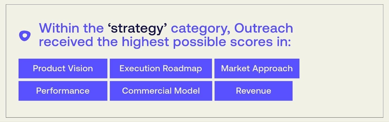 We see further validation of our strategy reflected in Outreach receiving the highest possible score in 23 out of 30 criteria in the Sales Engagement Platforms Wave report.