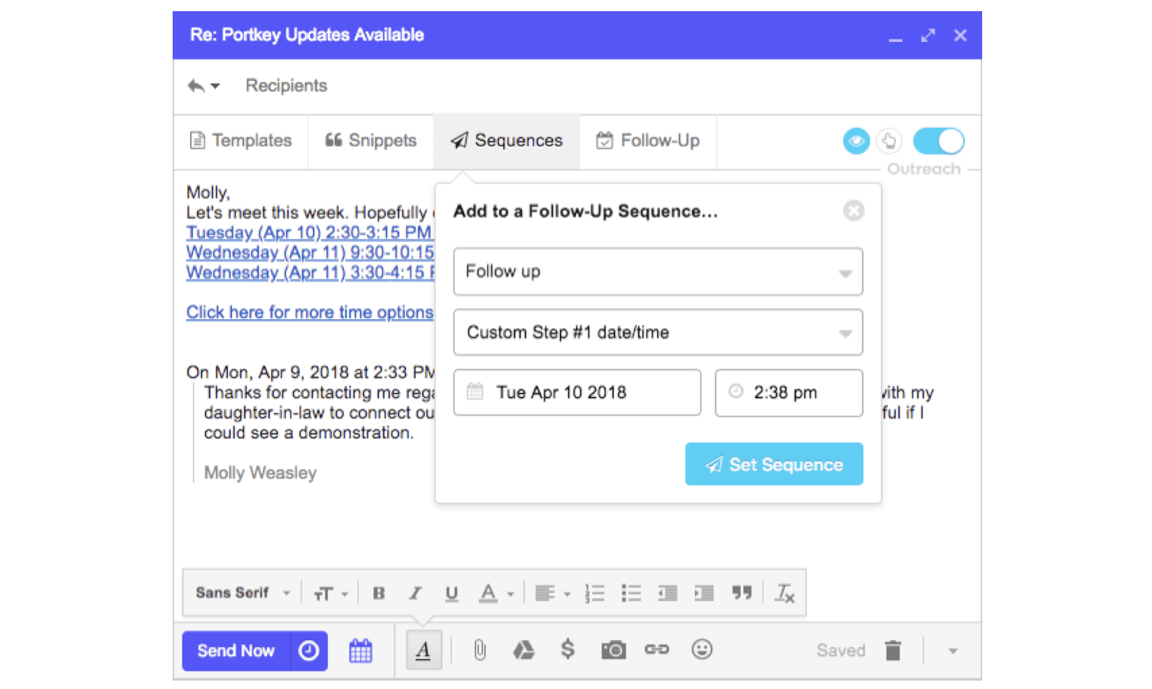 And, you can use follow-up sequences from right inside your inbox.