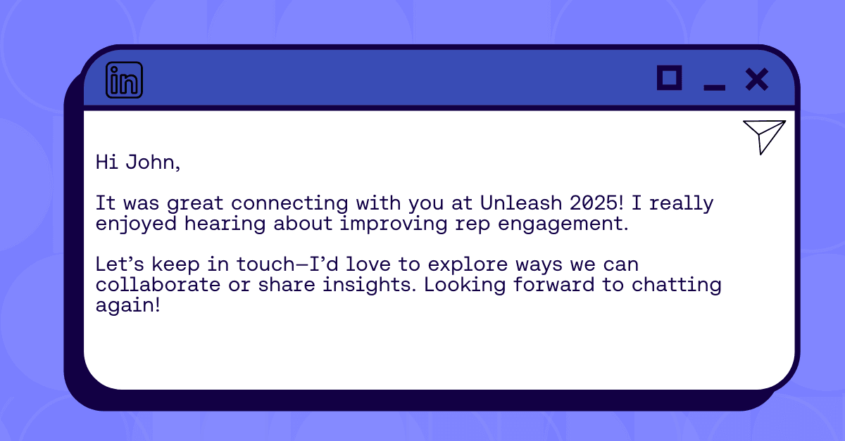 Hi [Name], I see you’re attending Unleash 2025. I’d love to connect and chat about [topic of interest]. Looking forward to meeting you there!