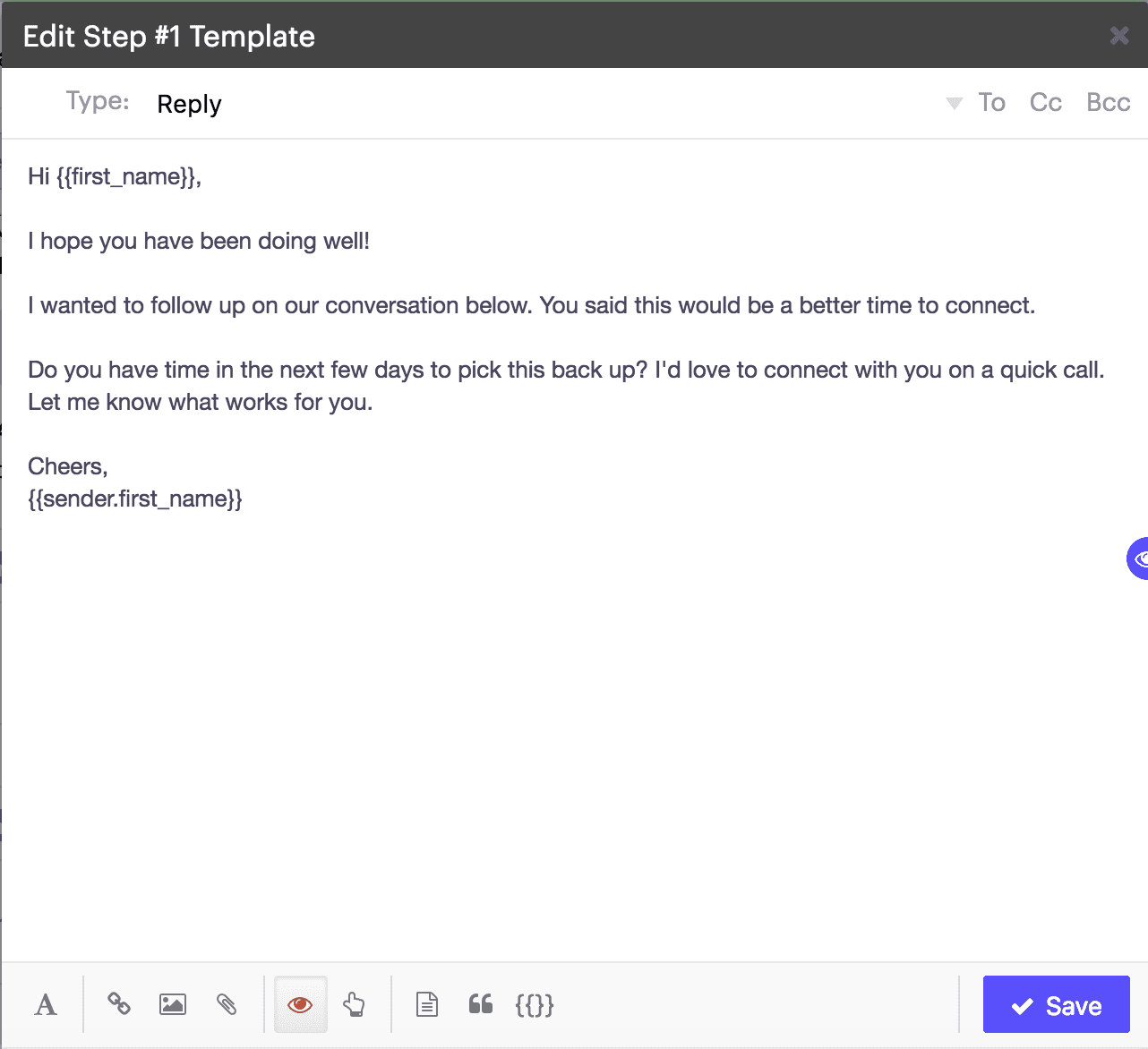 This ones for when you sent suggested times from your calendar a few days ago but the prospect hasn't responded yet.