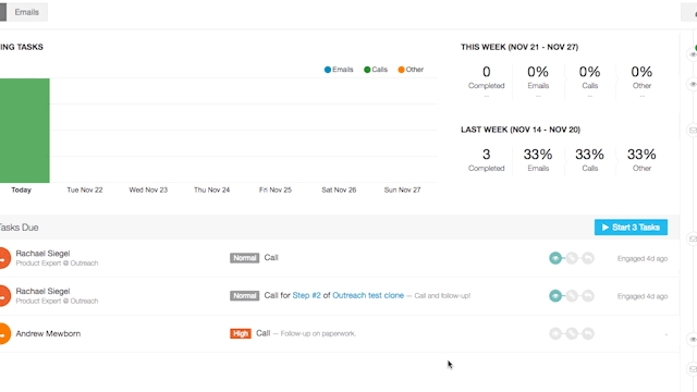 Task priority can be set at the sequence level on any manual step, whether a manual email, generic task, or phone call. You’ll see the step priority on the sequence overview page. When the prospect is active in the step, a task will be generated and tagged with the priority that was selected when the step was created.