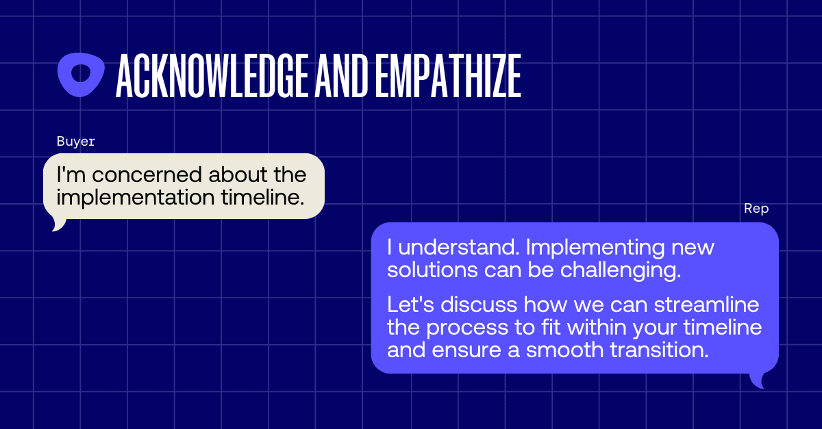 Rebuttal example: "I understand. Implementing new solutions can be challenging. Let's discuss how we can streamline the process to fit within your timeline and ensure a smooth transition.”