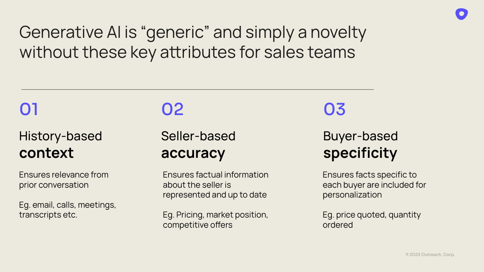 Every sales leader struggles with consistent execution across their sales team. AI capabilities in Outreach can help uplevel the entire sales team and make all your reps as good as your best reps.