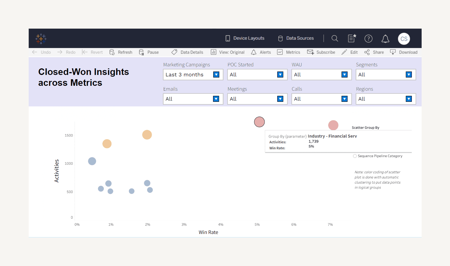 For many, their marketing teams have to “throw work over the wall” to sales teams, with no visibility into what happens once the lead has changed hands. Lacking a unified view of activities made it difficult to catch upstream signs that could impact downstream outcomes. Customers shared they had issues refining top-of-funnel activities to help improve how they would flow down to sales opportunities.