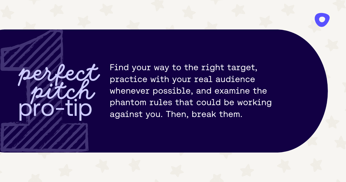 Find your way to the right target, practice with your real audience whenever possible, and examine the phantom rules that could be working against you. Then, break them.