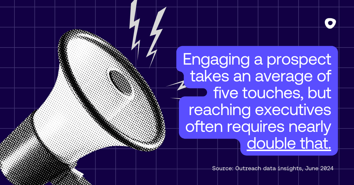 Stay persistent! It takes an average of 5 touches to engage a prospect, but reaching executives often requires nearly double that — around 9 touches, compared to just 4 for lower-level contacts.