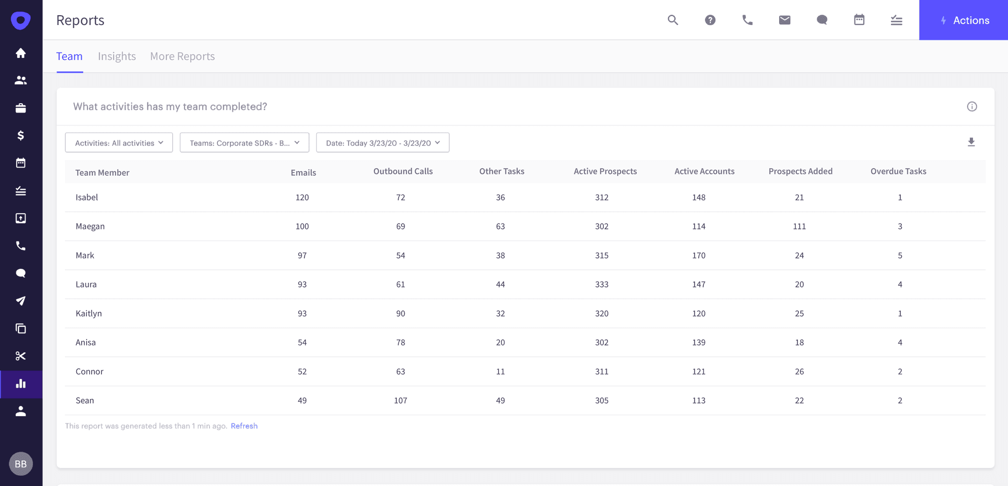 Since I can no longer pop by someone’s desk to ask how their day’s production is going, I’ve been really thankful that I can continue to lean on our Outreach tool stack. Here’s a few of the key reports I’m checking multiple times a day instead of my historical once a day: