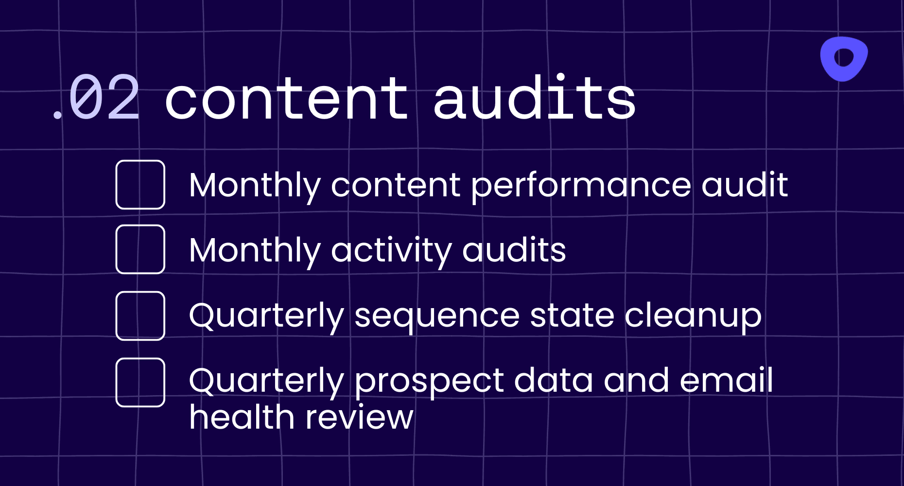 Audit content regularly to ensure your Outreach materials stay relevant and aligned with team and customer needs.