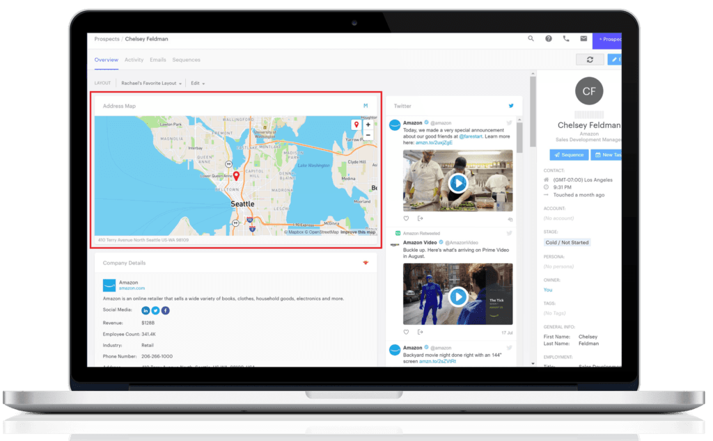 Think about it. We’re not saying you should cyber stalk someone’s home with live satellite views (actually, consider this explicit advice NOT to do that), but if you see your prospect lives in the same town as your in-laws, that’s an easy icebreaker. Are they located in the same city that you just visited on vacation? Another icebreaker! I think you see where I’m going here… Something as unassuming as a map can be a powerful way to naturally open the conversation to more than a sales pitch and build rapport with your prospect.
