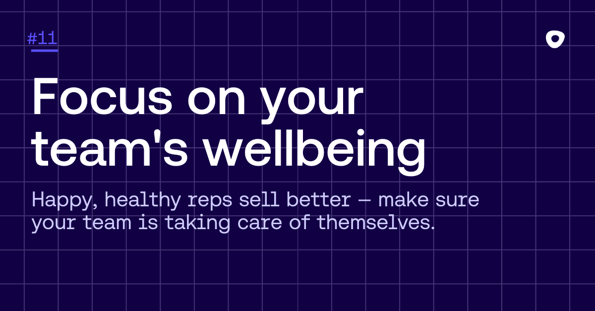 To make sure sellers get the most out of their coaching efforts, focus on reps’ well-being. Encourage reps to focus on their nutrition, sleep, and exercise, and persuade them to take a break when needed. Sellers must be mentally, emotionally, and physically healthy to perform effectively at work. If they’re sleep-deprived or overstimulated, they’re at risk for burnout that leads to turnover.