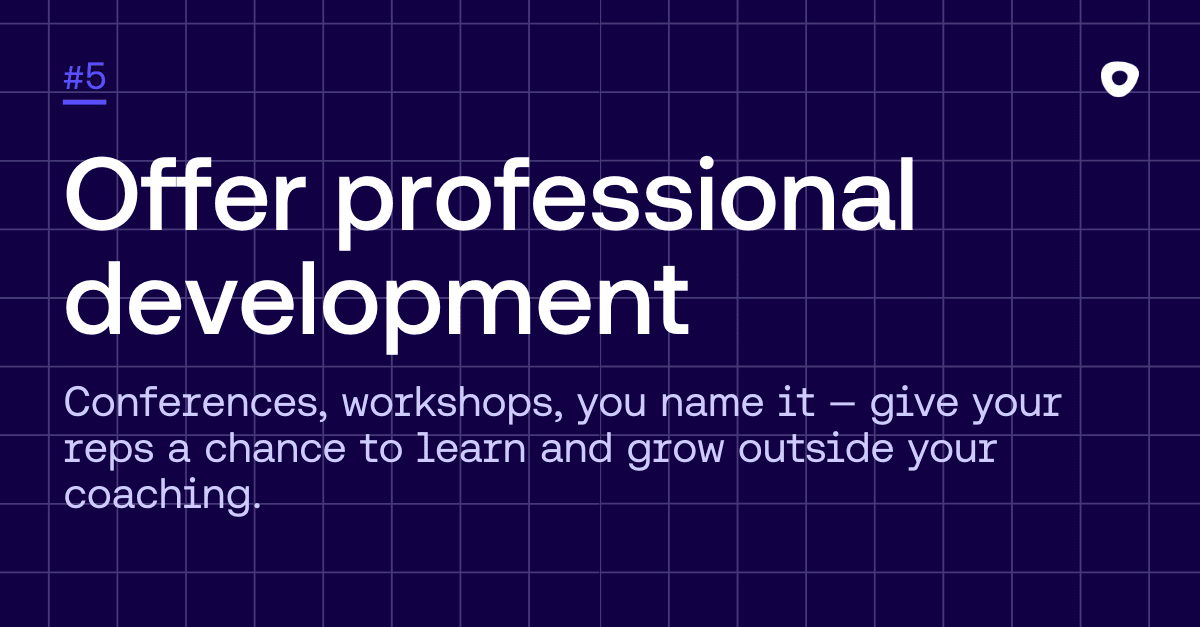 Rather than limiting their best reps’ growth by only providing their own coaching, managers should encourage sellers to expand their horizons and pursue other development initiatives. Empower sellers by offering additional development opportunities like industry conferences, seminars, workshops, classes, webinars, and networking events.