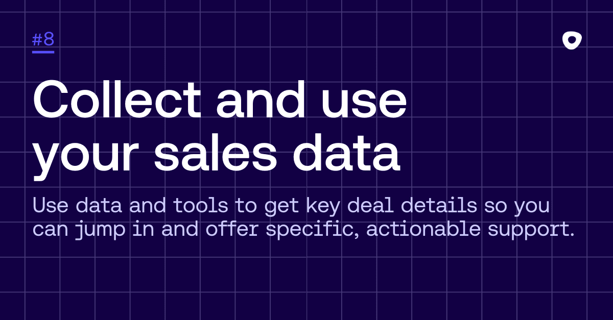 To avoid this, capture and use real-time data for coaching. Technology takes an integrated approach, offering the team complete visibility into what’s going on in every deal. That way, managers always have relevant information and can intervene in problematic negotiations before they fall apart.