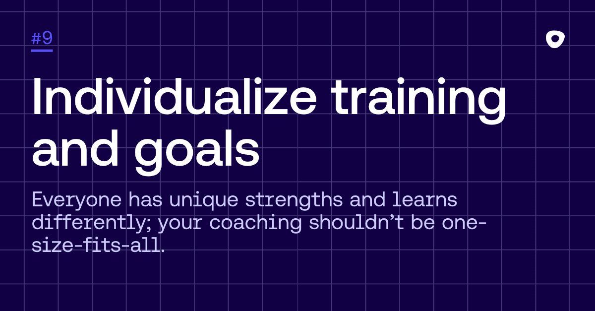 Tailor training methods and goals for each team member. Schedule one-on-one meetings with each rep and encourage them to discuss how they learn best. Then, structure each individual’s coaching plans and goals based on their work style, personality, and preferred cadence of feedback delivery.