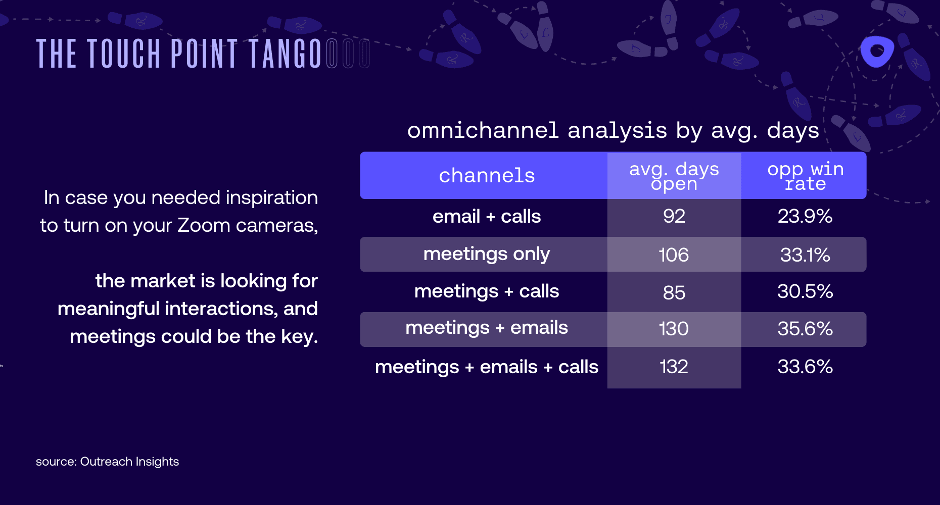 The Outreach Sales Execution Platform serves millions of sales and revenue interactions worldwide, so we turned to our internal database to understand how sales cycles and communication touch points have evolved, and what to do next to close deals faster, increase win rates, and communicate better. Warning: it’s a bit of a dance.