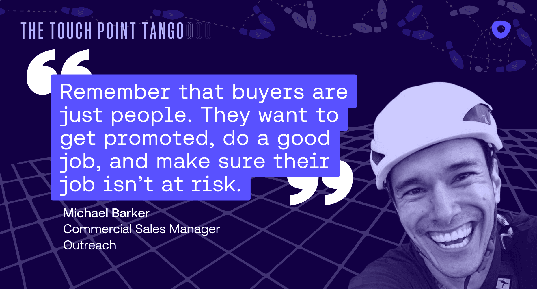 Use larger buying committees to your advantage, especially at the top. Outreach data indicates when more than one contact is engaged, deals are 37% more likely to close. But cross-department threading has the potential to increase win rates by 56%. “Aim for the highest part of the organization if you can,” recommends Michael. “The higher-up the contact, the more likely you can get executive alignment and assuage any fears or uncertainty.”