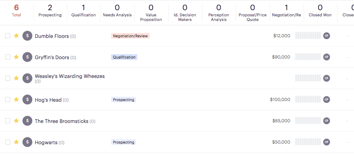 You can also filter opportunities by deal stage to ensure your individual, team, and company pipeline is sufficiently stocked, and see the dollar value of your pipeline at a glance.