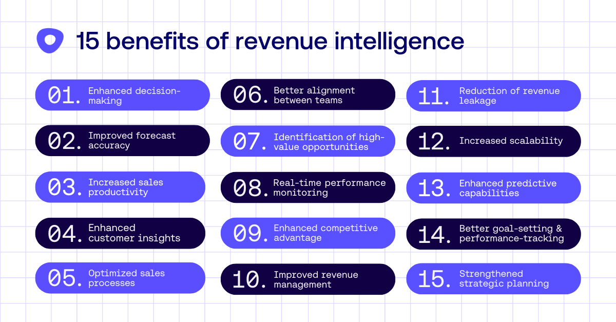 Revenue intelligence systems transform raw data into actionable insights, enabling businesses to optimize their sales process. These benefits not only enhance individual performance but also empower entire organizations to achieve more robust, sustainable growth. Here are 15 key benefits of integrating revenue intelligence into your business.