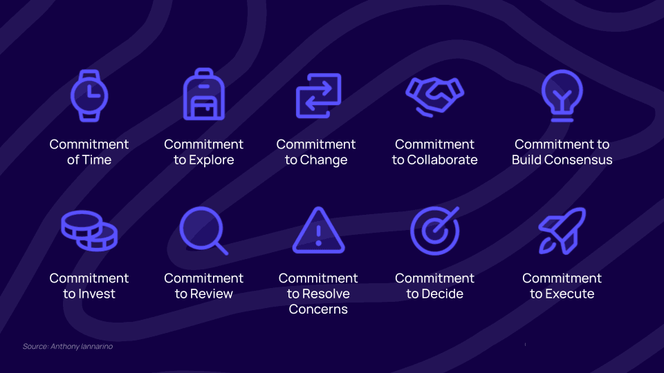 The best framework for micro commitments I have found is Anthony Iannarino’s 10 Commitments to close: