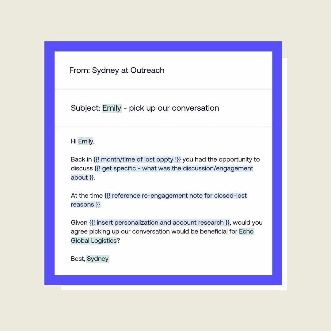 My most successful engagements come from “warm” accounts or opportunities that have familiarity with Outreach based on previous open opportunities we’ve had with them.