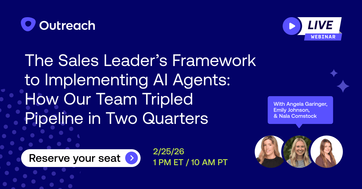Join Outreach for a sales leader’s practical walkthrough to integrating AI agents into strategy – and translating that strategy into real outcomes.
