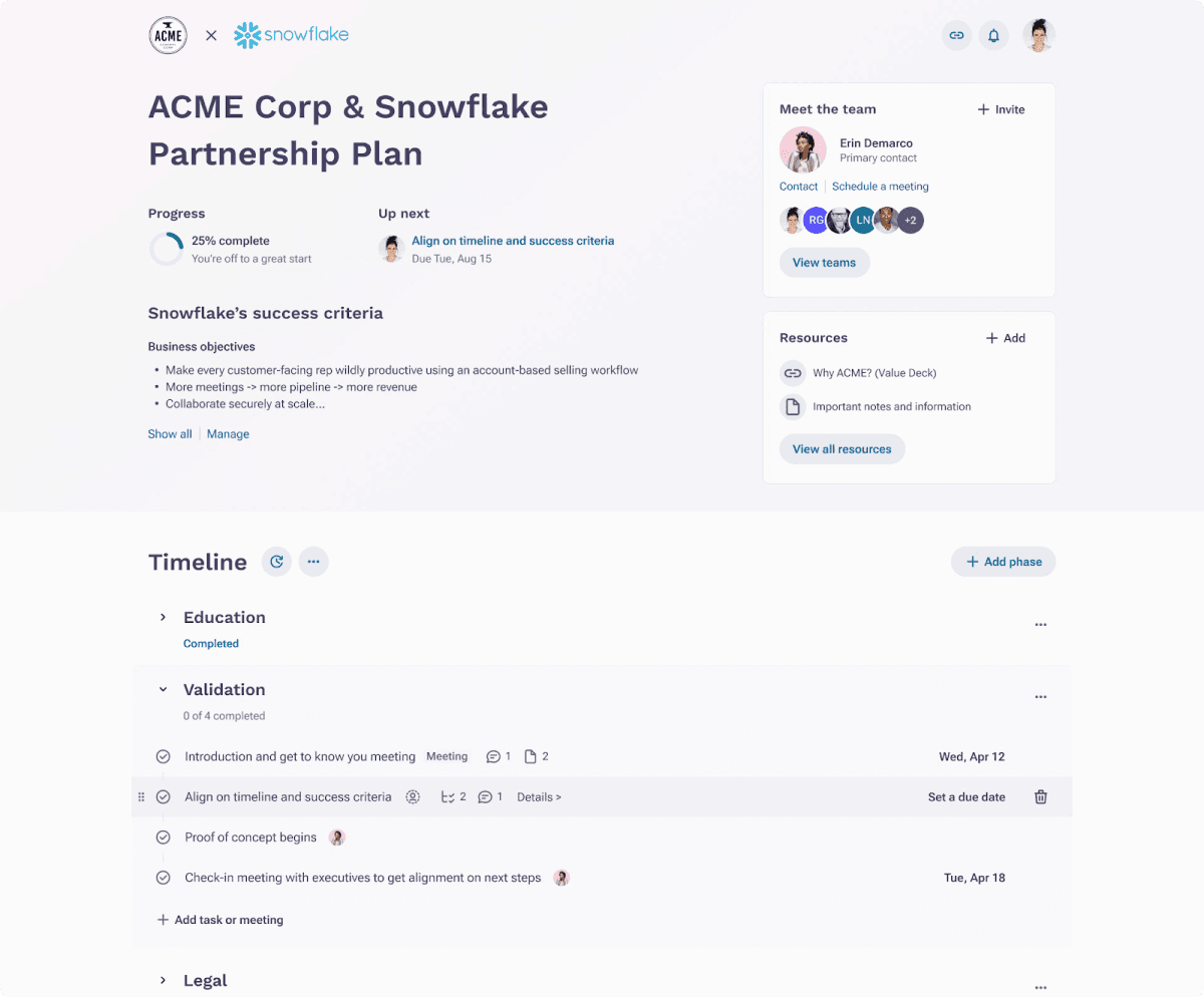 Jointly define milestones for success with customers and never miss an opportunity to demonstrate value.