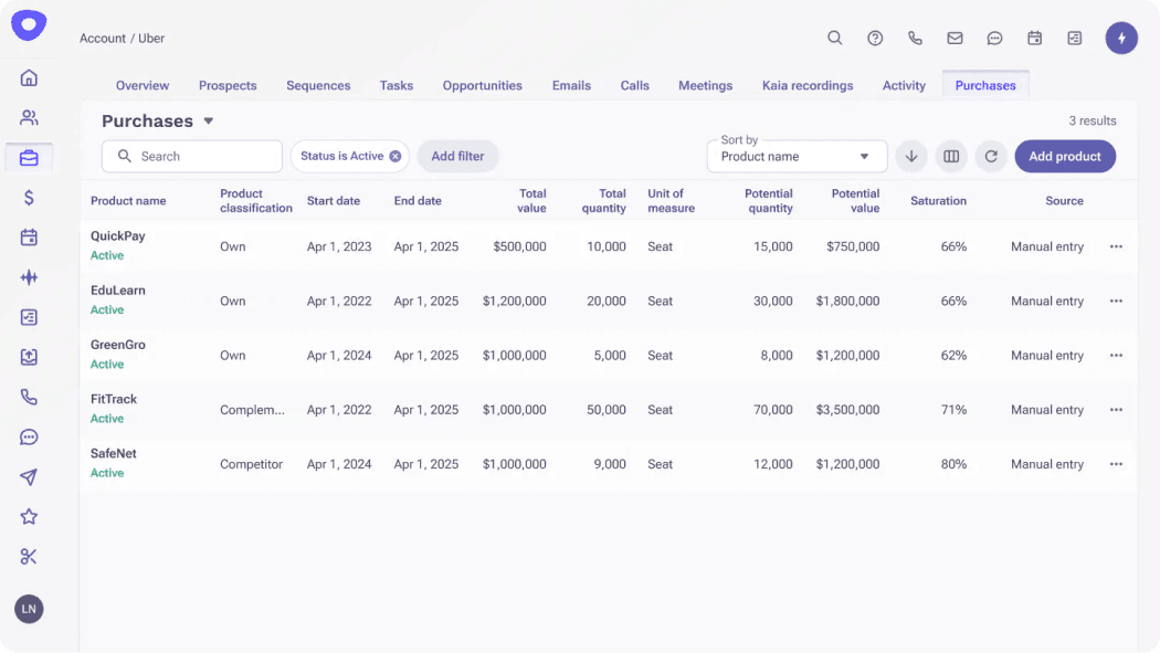 Make customer buying signals visible in your account team’s system of action. Use a view of competitive and complementary products purchased by your customer as triggers that help Account Managers send messages that create upsell and cross-sell opportunities at exactly the right time.