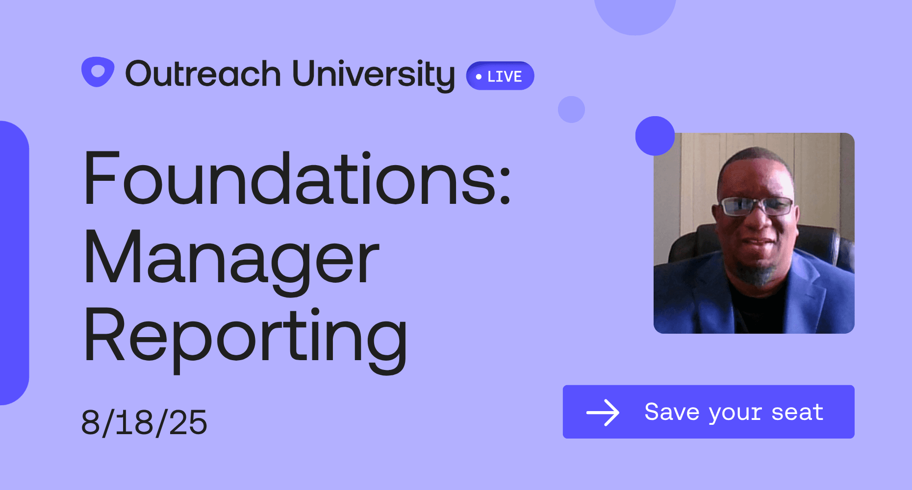 Join us for Outreach University Live, your go-to resource for asking questions, receiving real-time guidance, and optimizing your instance. These weekly sessions cover foundational, technical, and strategic topics and allow you to learn and problem-solve live with experts.
